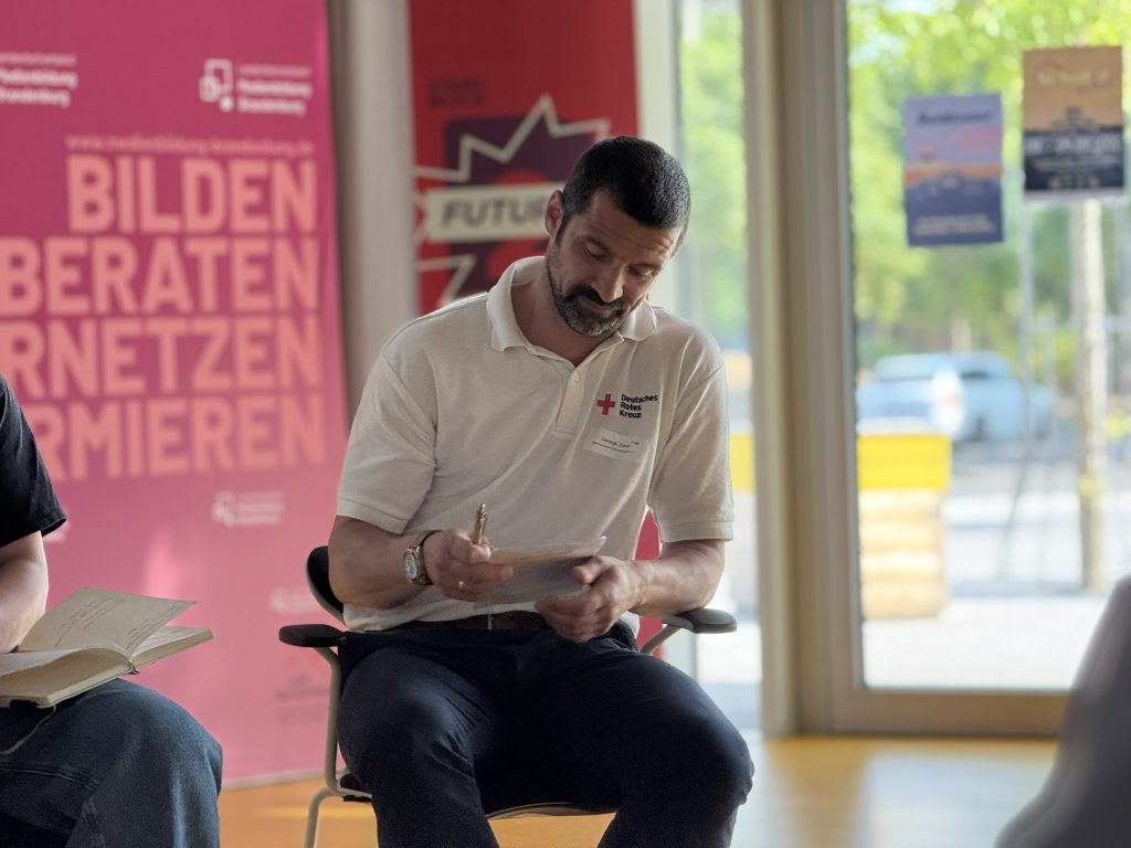 Falk Peschel (BSW, MdL), der parlamentarische Geschäftsführer der BSW-Fraktion, Lennox Doernbrack (Referent für Kinder- und Jugendbeteiligung) und Daniel Gensigk, (Leiter Jugend(sozial)arbeit beim DRK Kreisverband Fläming-Spreewald).