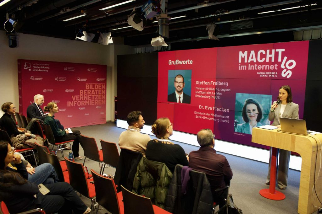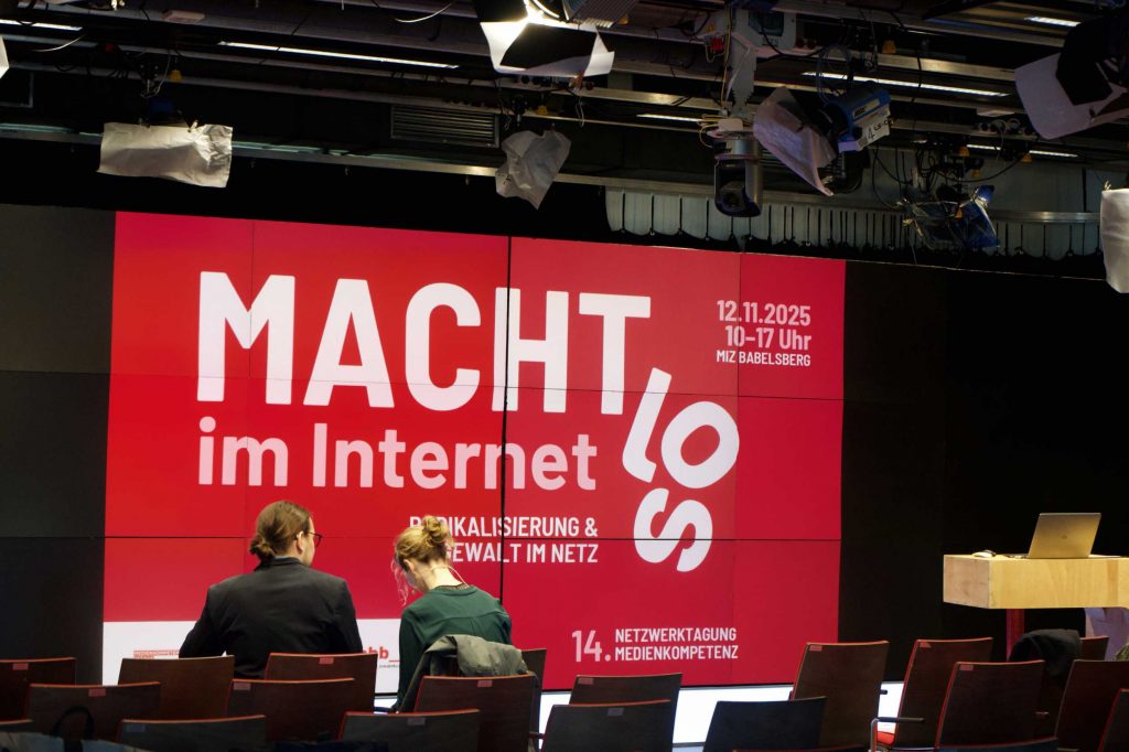 Am 12. November 2025 lud der Landesfachverband Medienbildung Brandenburg e.V. gemeinsam mit seinen Partner*innen zur 14. Netzwerktagung ins Medieninnovationszentrum Babelsberg ein, die in Kooperation mit dem Ministerium für Bildung, Jugend und Sport (MBJS) und der Medienanstalt Berlin-Brandenburg (mabb) als Teil des Programms „Medienkompetenz stärkt Brandenburg“ durchgeführt wurde. Unter dem Titel „Macht(los) im Internet – Radikalisierung und Gewalt im Netz“ wurde ein vielschichtiges Programm angeboten, das sich mit den aktuellen Herausforderungen digitaler Radikalisierung, toxischer Männlichkeit und Gewalt im Netz auseinandersetzte. Die Tagung richtete sich an pädagogische Fachkräfte, Jugendsozialarbeiter*innen, Medienpädagog*innen sowie Vertreter*innen aus Politik und Verwaltung und bot die Gelegenheit, sich intensiv mit Präventions- und Interventionsansätzen zu befassen.