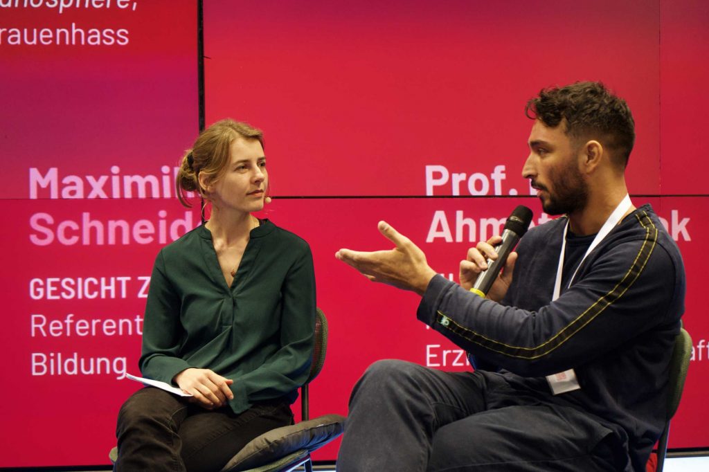 Maximilian Schneider, Referent für politische Bildung bei Gesicht Zeigen! e.V., berichtete aus der praktischen Arbeit mit Jugendlichen. Er schilderte eindrücklich, wie toxische Männlichkeitsbilder in Schulklassen präsent sind und wie Schüler sich gegenseitig in problematischen Rollenbildern bestärken. Schneider machte deutlich, dass die Diskrepanz zwischen der fortgeschrittenen feministischen Bildung vieler Mädchen und dem Entwicklungsstand vieler Jungen enorm sei – „die Mädchen sind sehr weit in feministischen Themen, während die Jungs gefühlt noch bei 1990 stehen“. Er forderte eine kommunikative Strategie, die junge Männer einbindet, statt sie durch polarisierende Sprache weiter zu entfremden. Gleichzeitig warnte er davor, den feministischen Anspruch aufzugeben: „Feminismus ist eigentlich kein Angriff auf Männer, sondern ein Angebot – wir reichen Männern die Hand, um ihnen zu vermitteln, ihr müsst nicht toxische Männlichkeit leben, ihr dürft Männlichkeit auf ganz andere Arten und Weisen leben.“