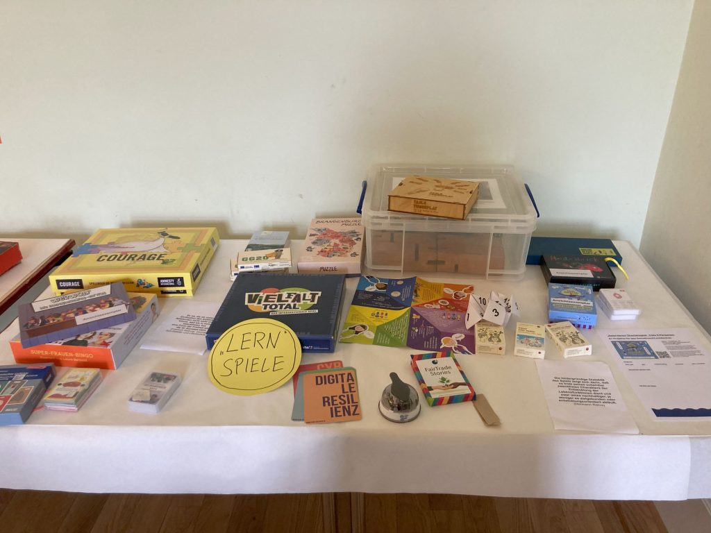 Die vorgestellten Spiele reichten vom kurzen Aufwärmspiel über Brettspiele bis hin zu komplexen Spielabläufen. Ob drinnen, draußen oder digital – alle Spielarten wurden nicht nur vorgestellt, sondern vor allem ausprobiert. Papierflieger wetteiferten mit KI-generierten Bildern, Klassiker trafen auf innovative Spielideen, und immer stand die Frage im Raum: Wie lassen sich diese Ansätze direkt in der (medien-)pädagogischen Arbeit mit Jugendlichen umsetzen?