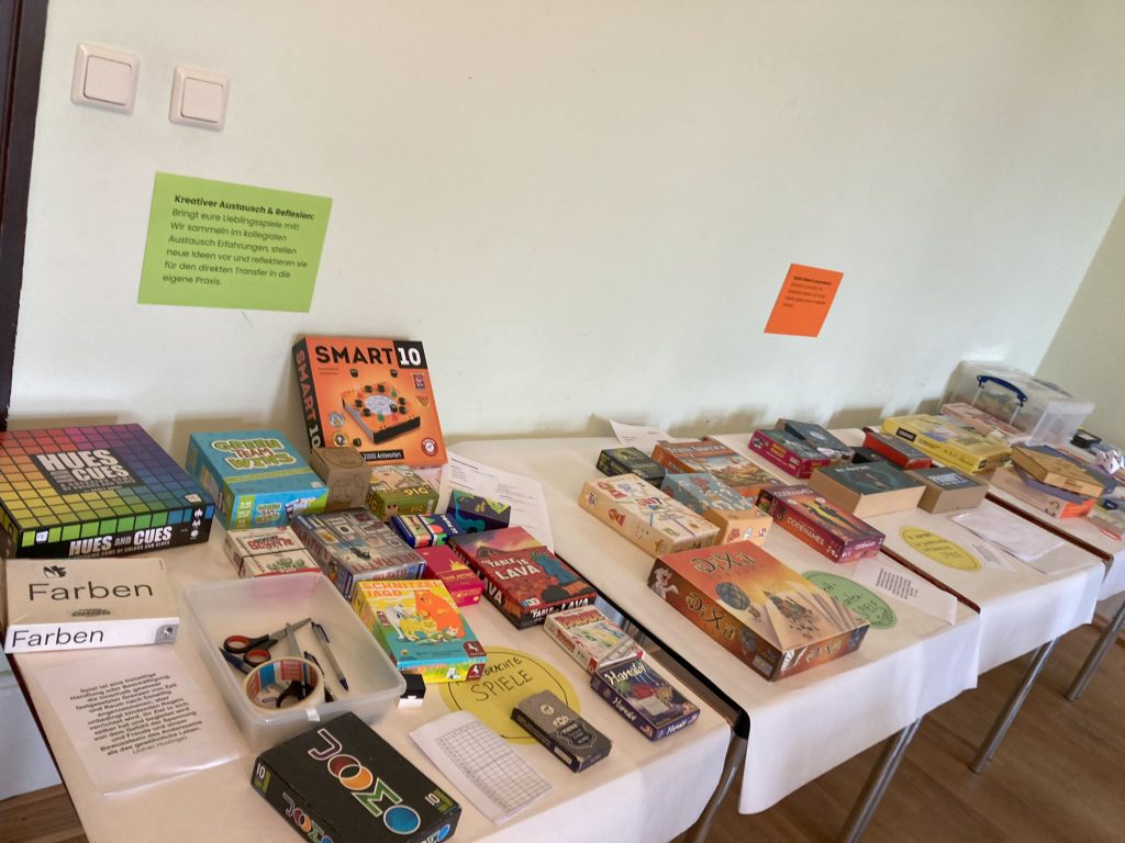 Die Resonanz war durchweg positiv. Und als Höhepunkt der zwei Tage wurde von vielen das gemeinsame Spielen am Abend genannt. Ausprobiert wurden hier die Spiele „Hues and Cues, bei dem man die richtige Farbe der Zitrone aber auch von Taubenflügeln erraten sollte und „Smart 10“, „Farben“, „Just One“ sowie „Town 77“.