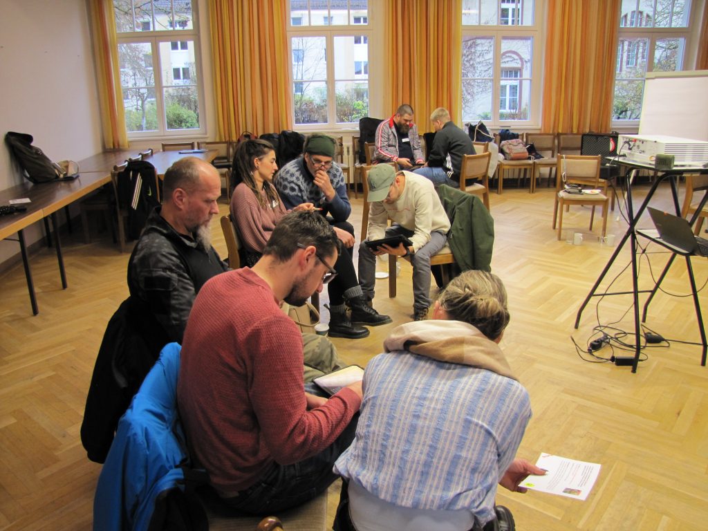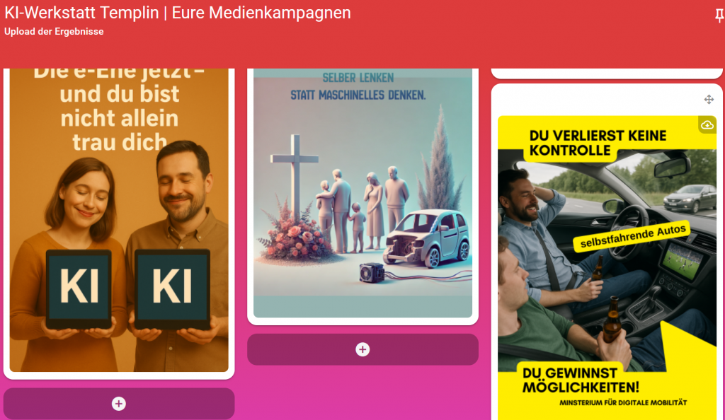 Im anschließenden Praxisworkshop stellte Fabian Wörz vom JFF – Büro Berlin verschiedene Tools und Methoden vor, mit denen sich das Thema KI gemeinsam mit Jugendlichen erkunden und kritisch reflektieren lässt. In Gruppen entwickelten die Teilnehmenden mithilfe von KI-Tools spielerisch Kampagnen, die den emotionalisierenden Logiken sozialer Medien folgen. Personalisierte Chatbots dienten dabei als Ideengeber, unterstützt von Bild- und Musikgeneratoren.