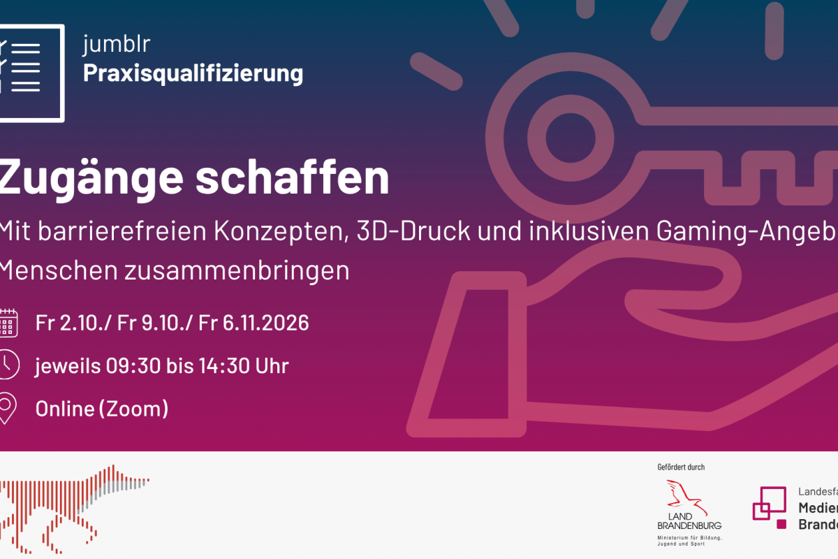 Das nächste jumblr Festival findet in Kooperation mit JuSeV und dem „Offi“ in Trägerschaft der Stiftung SPI am 24.04.2026 in Bad Freienwalde statt. In diesem Jahr steht Gaming als Element von Jugendmedienkultur im Fokus. Neben Praxisstationen und Talks für Fachkräfte veranstalten wir ein eSport-Turnier mit Jugendlichen. Hier anmelden.